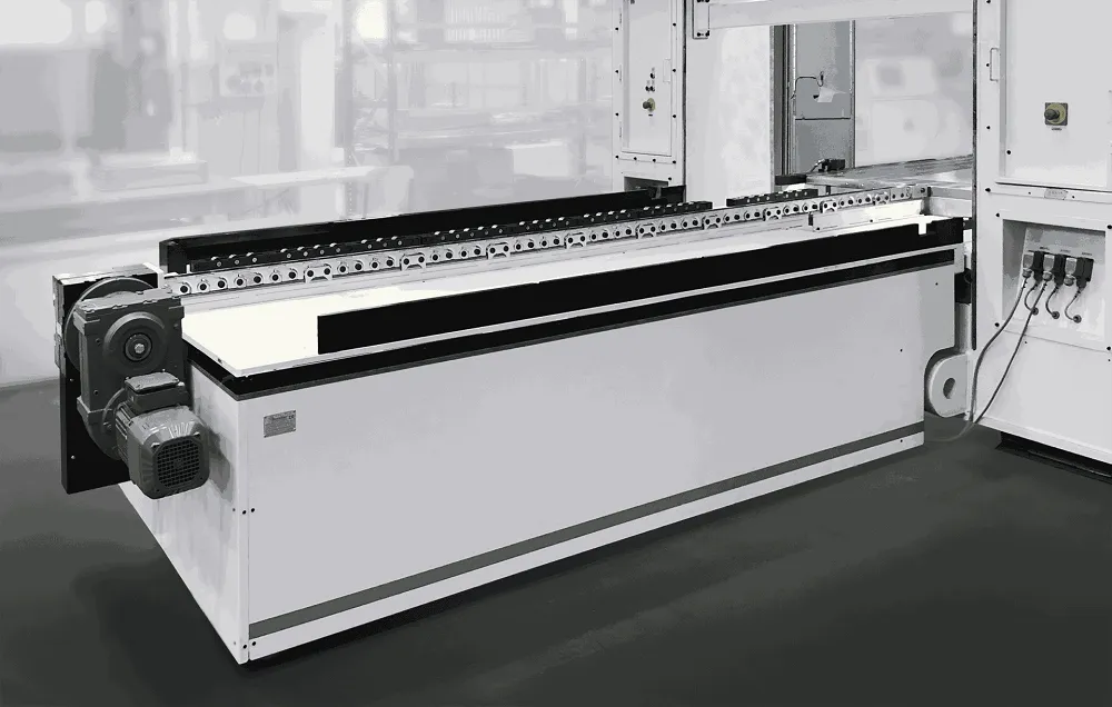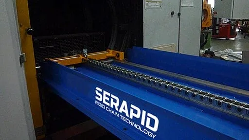 강성 체인은 전진 시 고체 바와 같은 강도로 하중을 이송하고, 복귀 시에는 롤 형태로 감겨 컴팩트한 매거진에 저장되며, 매거진은 수직형 또는 수평형으로 구성할 수 있습니다.