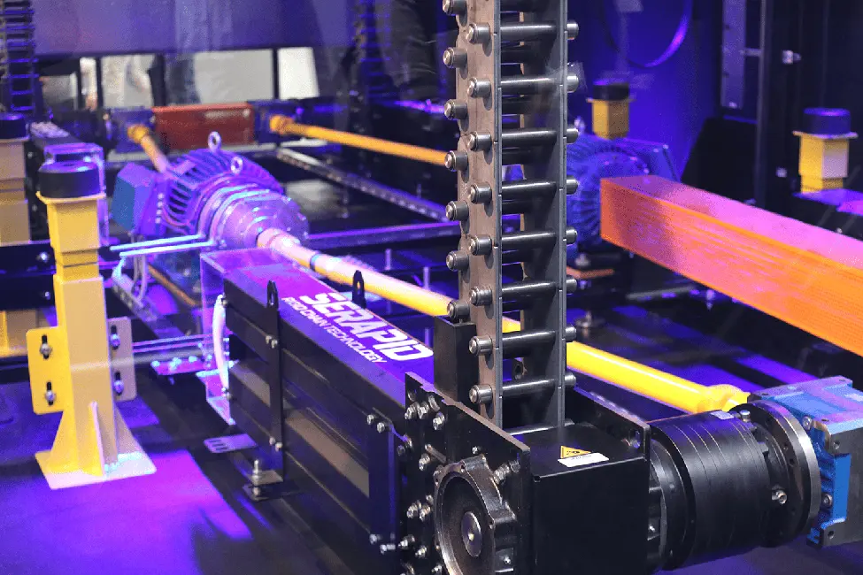 SERAPID의 CHAINMAST는 최대 40피트까지 부드러운 수직 리프트 동작을 구현하며, 반복 가능한 정지 성능과 높은 위치 정밀도를 제공합니다. 또한 수직형 매거진 구조를 적용해 설치 공간을 최소화했습니다.